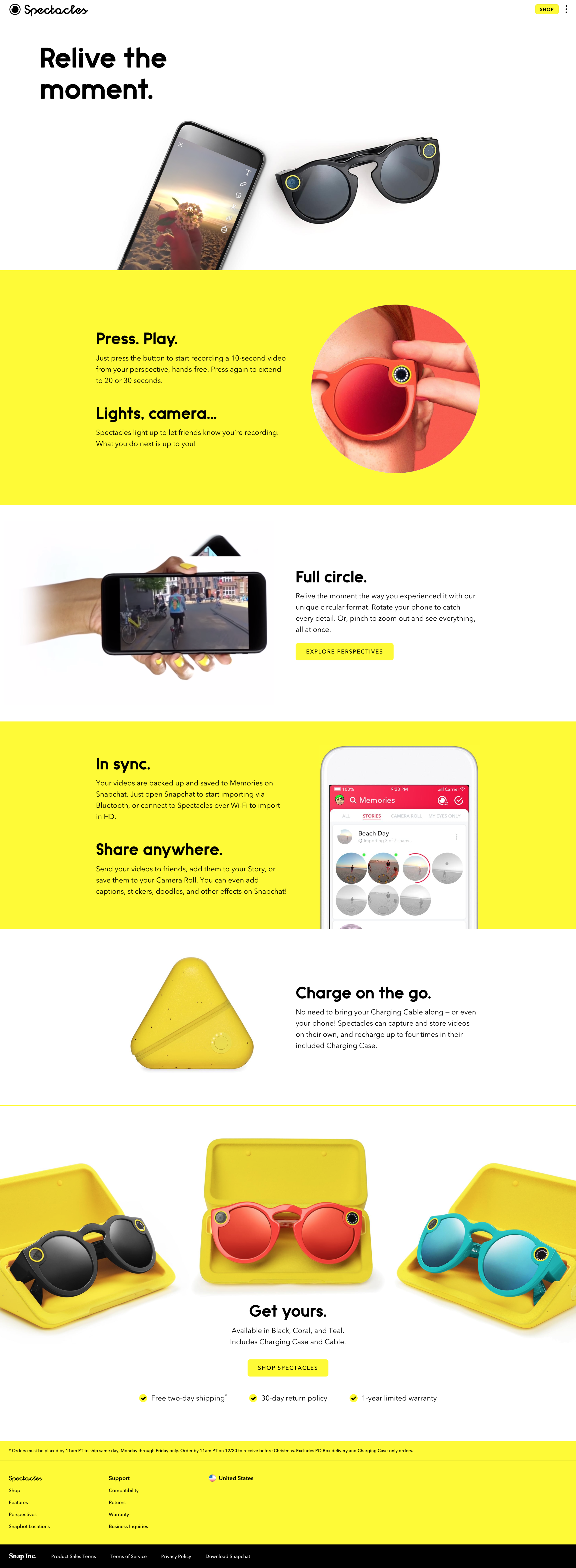 I also rewrote the entire Spectacles website, oversaw its launch, and rewrote every page on the Spectacles support site to align with the refine brand voice.